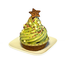 Kerstschuimgebakje met hazelnootcrème en hazelnoot.