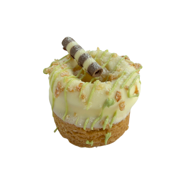 Ons klassieke koninkje gemaakt met een spijsbodem met een heerlijke appel-kaneelbavaroise met stukjes appel en afgewerkt met victoria beslag.