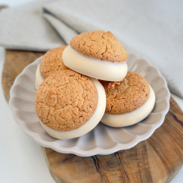Onze klassieke banket bitterkoekjes zijn gemaakt met Bitterkoekjes-spijs, afgewerkt met een laagje karamelcrème en vervolgens gedoopt in chocolade.